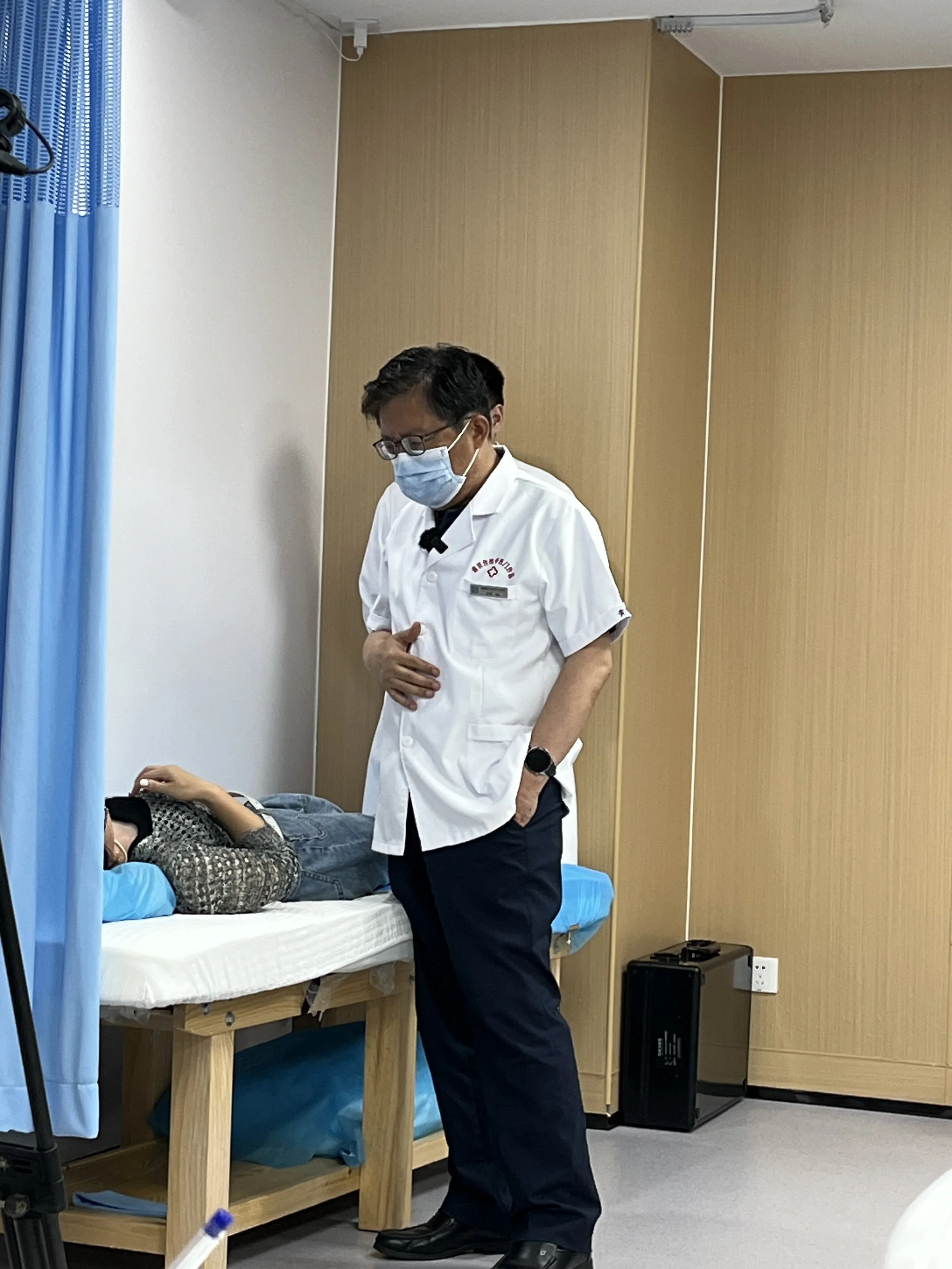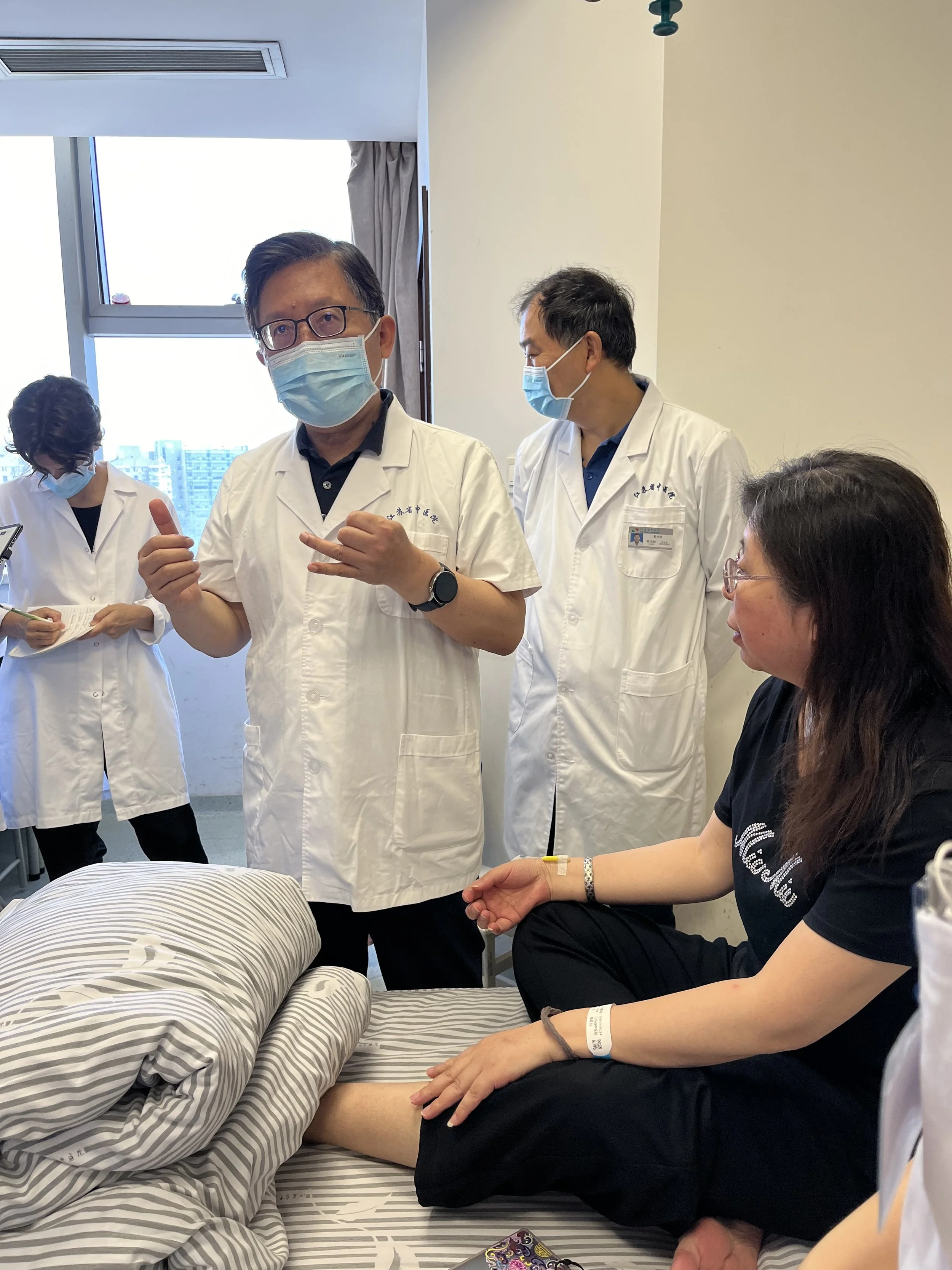 Ensino e discussão dos casos conduzidos pelo Professor Huang Huang e pelos médicos seniores em Jing Fang Dra. Xiao Mei e Dr. Zhang Xue